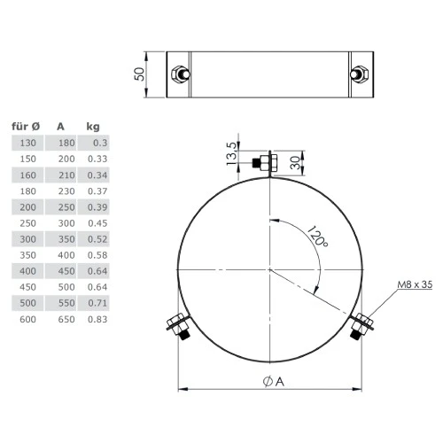 1x Abspannschelle mit 3 Angriffspunkten für den Edelstahlschornstein DW-ECO von Jeremias