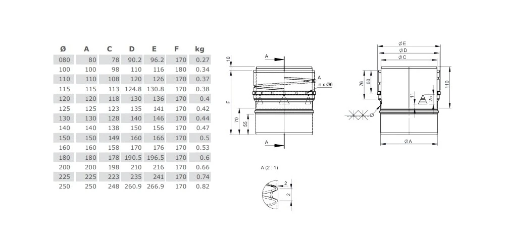 - Adapter zur Verbindung eines starren mit einem flexiblen Schornsteinrohrs aus Edelstahl