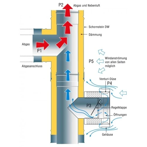 - Nebenluftvorrichtung nach DIN 4795 zur Herstellung von regelmäßigen Zugbedingungen