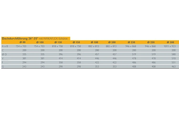 1 x Dachdurchführung 26° – 35° mit Wakaflex-Schürze – doppelwandig – Schiedel ICS