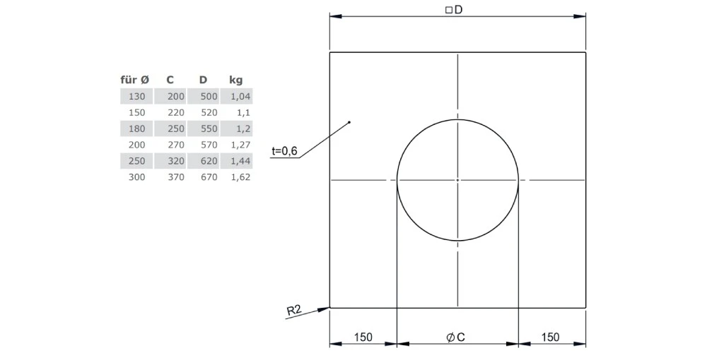 | Materialstärke (Schornstein) (mm) | 0,6 |