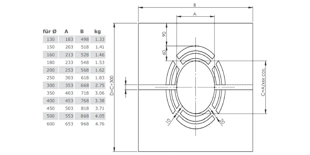 1x Deckenblende zweiteilig mit Hinterlüftung für Dachneigungen von 1 bis 65 Grad für den Edelstahlschornstein DW-ECO von Jeremias