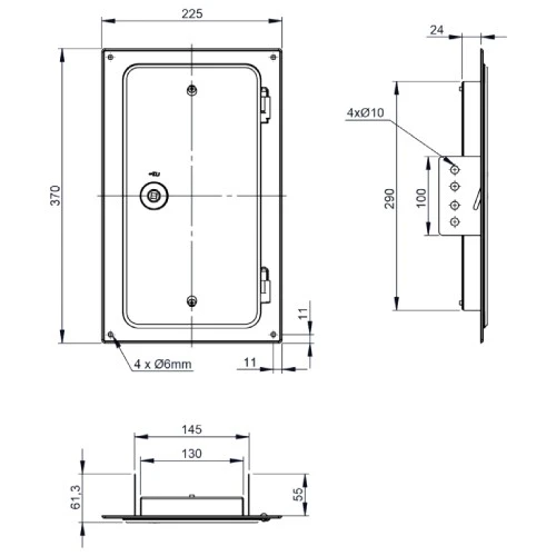 1x Edelstahlkamintüre 300 x 150 mm mit 4 Bohrungen und 2 seitlichen Laschen für System EW-FU von Jeremias