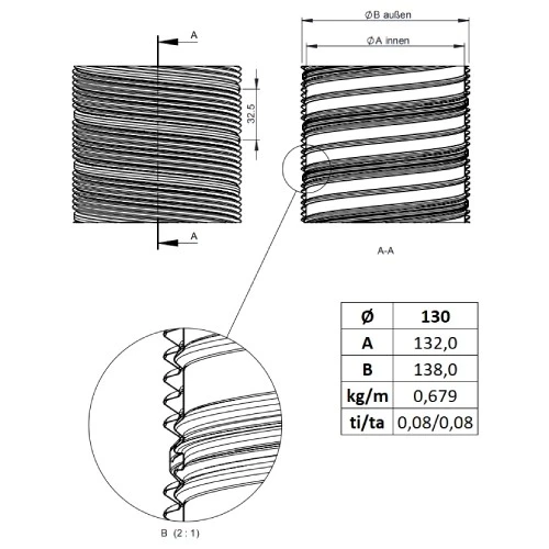 - Innendurchmesser: 130 mm