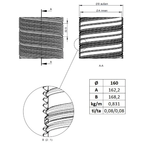 1x flexibles Edelstahlrohr ( Länge wie gewählt ) für System EW-FU von Jeremias