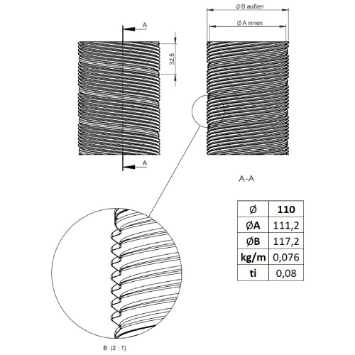 1x flexibles Edelstahlrohr ( Länge wie gewählt ) für System EW-LINE-FLEX-FU von Jeremias