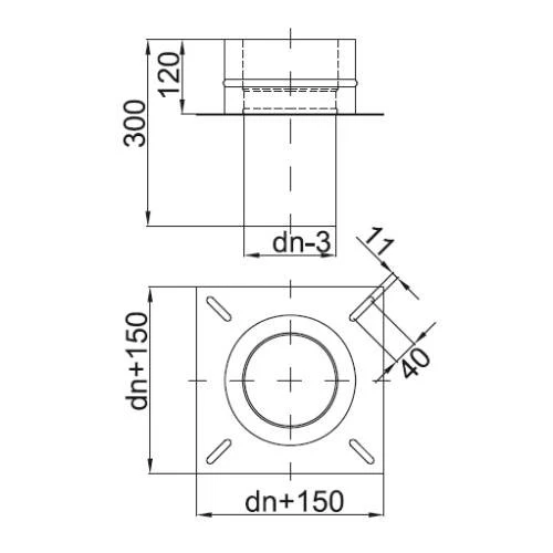 1 x Grundplatte für Kaminerhöhung mit rundem Einschub – doppelwandig – Reuter DW-BLUE