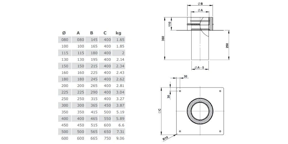 1 x Grundplatte für Kaminerhöhung (mit rundem Einschub, l = 220 mm) – doppelwandig – Jeremias DW-FU