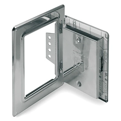 Kamintür in diversen Größen, komplett aus Edelstahl. Bestehend aus Rahmen und Türblatt, mit Schlüssel. Bauart geprüft.