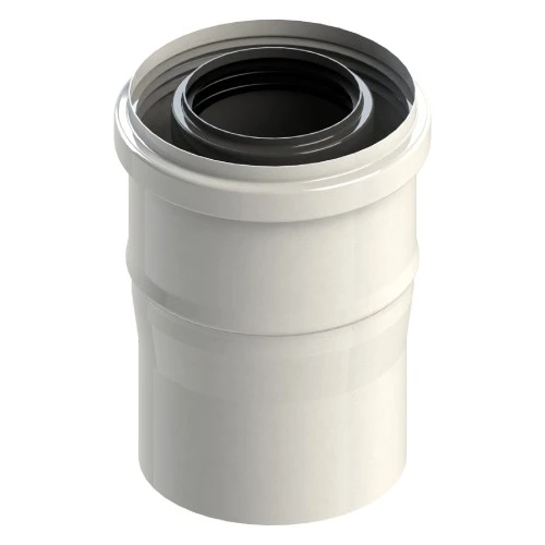 Kesselanschluss. Konzentrische Verbindungsleitung für Feuerstätten in raumluftunabhängiger Betriebsweise. Einbau nur im Gebäude, als Verbindungsleitung zur senkrechten Abgasführung.