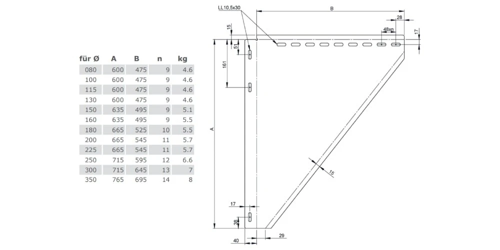 Hochwertige Konsolbleche für die wandseitige Montage von doppelwandigen Edelstahlschornsteinen.