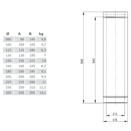 Dieses Längenelemt dient zur Verlängerung der auf dieser Internetseite angebotenen doppelwandigen Schornstein – Systeme. Eine Kompatibilität mit anderen Schornstein – Systemen kann nicht garantiert werden. Bitte erfragen Sie im Zweifelsfall die technischen Details.