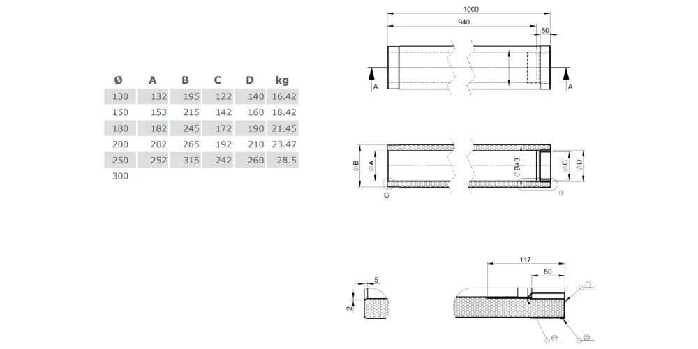 1x Längenelement 1000 mm mit integriertem Wandfutter, kürzbar für Ferro, für System DW-VISION von Jeremias