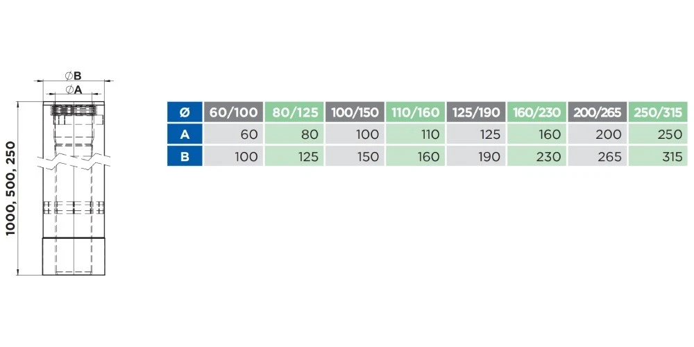 Schornsteinverlängerung – Doppelwandig – 1500 Mm Wirksame Höhe