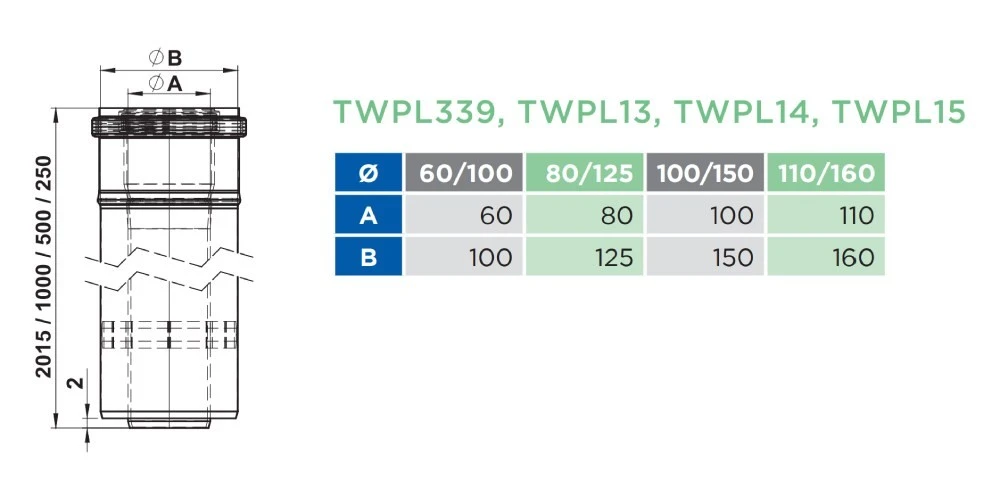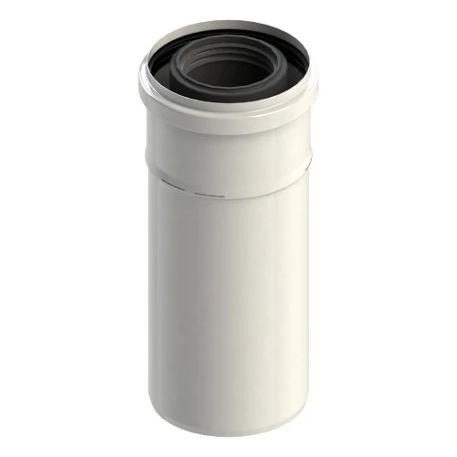 Längenelement 250 mm. Konzentrische Verbindungsleitung für Feuerstätten in raumluftunabhängiger Betriebsweise. Einbau nur im Gebäude, als Verbindungsleitung zur senkrechten Abgasführung.