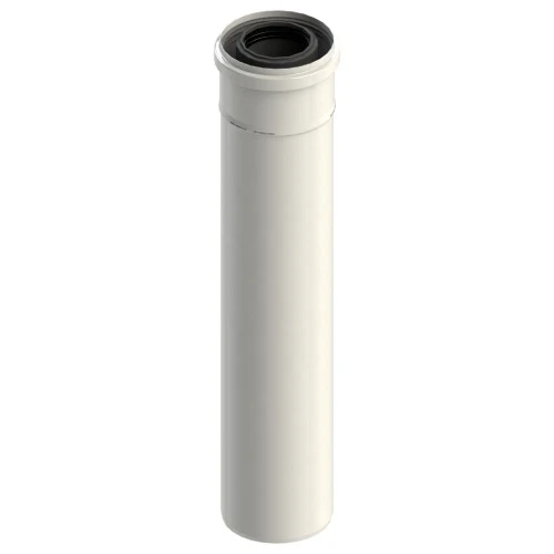 Längenelement 500 mm. Konzentrische Verbindungsleitung für Feuerstätten in raumluftunabhängiger Betriebsweise. Einbau nur im Gebäude, als Verbindungsleitung zur senkrechten Abgasführung.