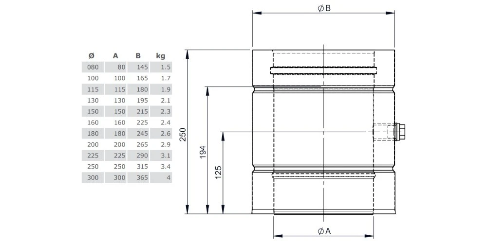 Messelement 250 mm mit 1/2“ Muffe und Verschlussschraube für den Kupferschornstein