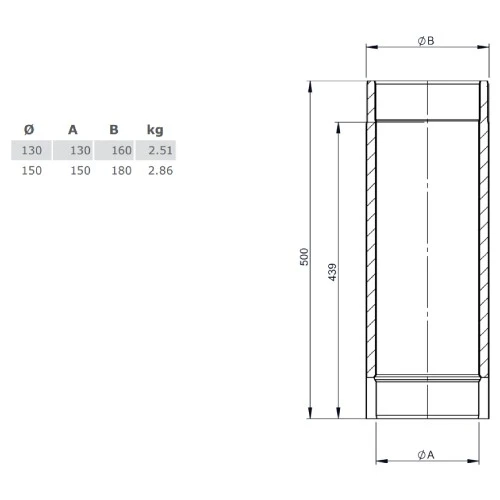 1 x Längenelement 500 mm für Ofenrohr ISO-Line von Jeremias