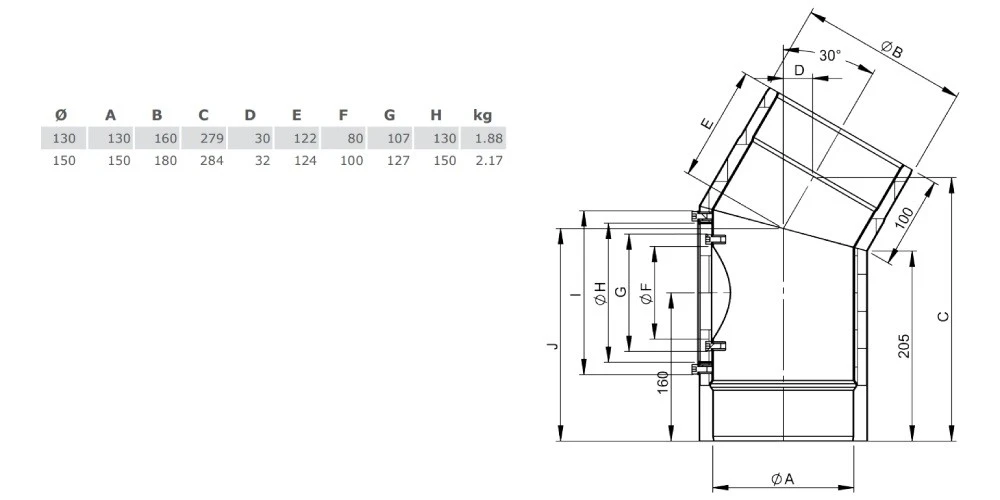 1 x Winkel 30° mit Tür für Ofenrohr Iso-Line von Jeremias