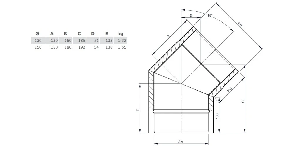 1 x Winkel 45° ohne Tür für Ofenrohr Iso-Line von Jeremias
