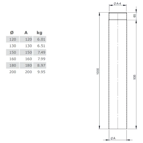 System Ferro-Lux: Kaminofenrohr – Längenelement