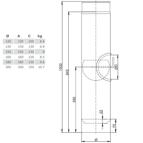 1 x Längenelement 1000 mm mit Drosselklappe, Kondensatring und Tür (mit Einzug) für Ofenrohr Ferro-Lux von Jeremias