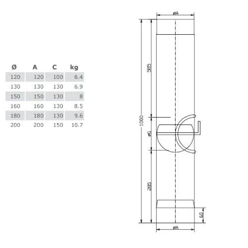 1 x Längenelement 1000 mm mit Drosselklappe, Kondensatring und Tür (ohne Einzug) für Ofenrohr Ferro-Lux von Jeremias