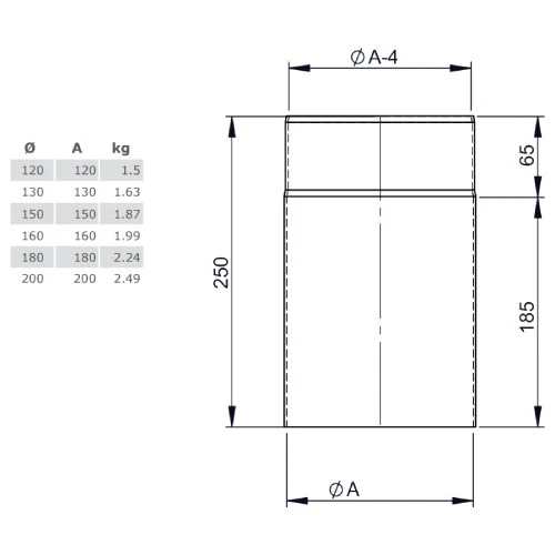 1 x Längenelement 250 mm für Ofenrohr Ferro-Lux von Jeremias