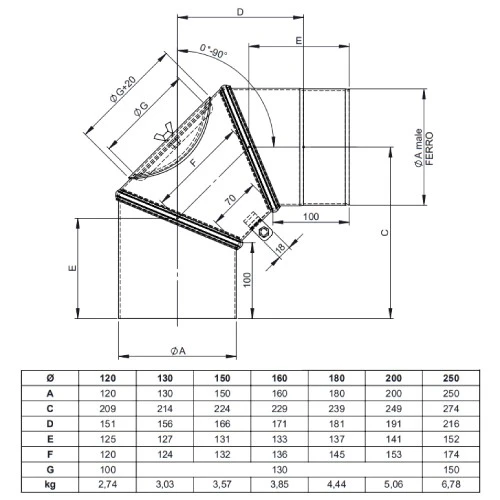 1 x Winkel drehbar 0-90° mit Tür für Ofenrohr Ferro-Lux von Jeremias