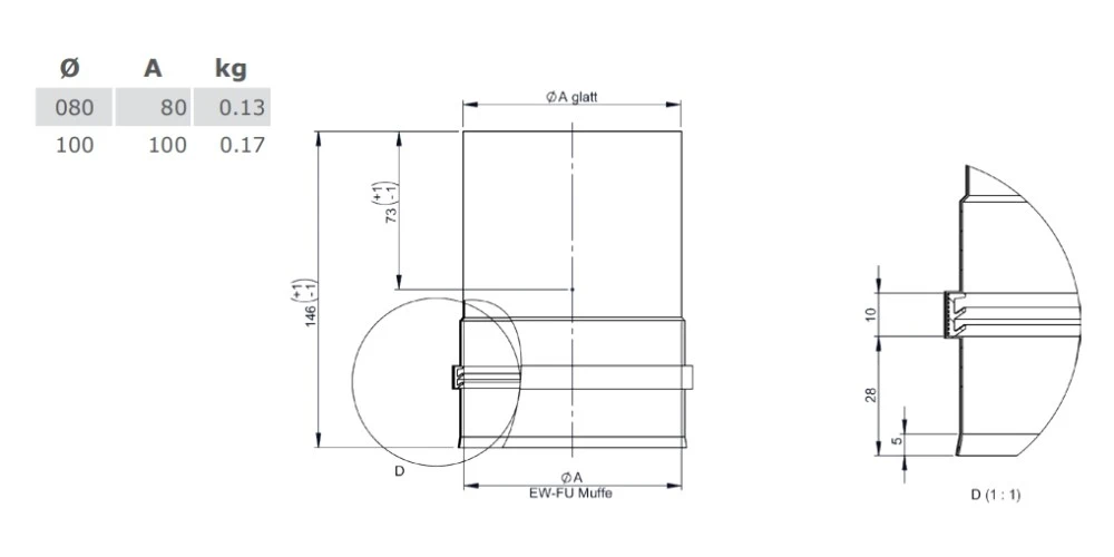 Einsatzzweck/Verwendung: Verbindungsleitung aus Edelstahl 1.4404 mit Muffe-Sicke Steckverbindung und innenliegender Dichtung für den Einsatzbereich im Wohn- und Sichtbereich für frei im Raum stehende Kaminöfen nach DIN EN 1856 – 2
