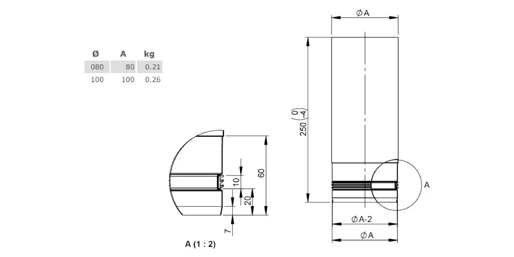Einsatzzweck/Verwendung: Verbindungsleitung aus Edelstahl 1.4404 mit Muffe-Sicke Steckverbindung und innenliegender Dichtung für den Einsatzbereich im Wohn- und Sichtbereich für frei im Raum stehende Kaminöfen nach DIN EN 1856 – 2