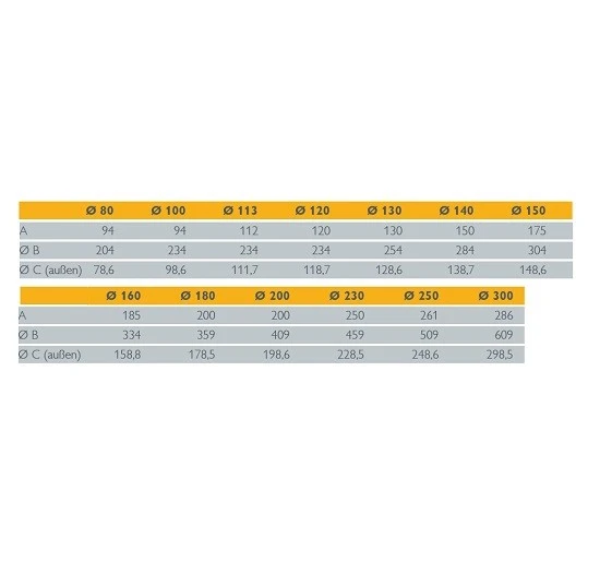 | Durchmesser | Ø 80 – 300mm |