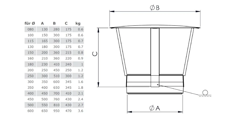 Guter Schutz vor Regeneintrag in den Schornstein. Der Edelstahlschornstein bleibt vor Feuchtigkeit geschützt.