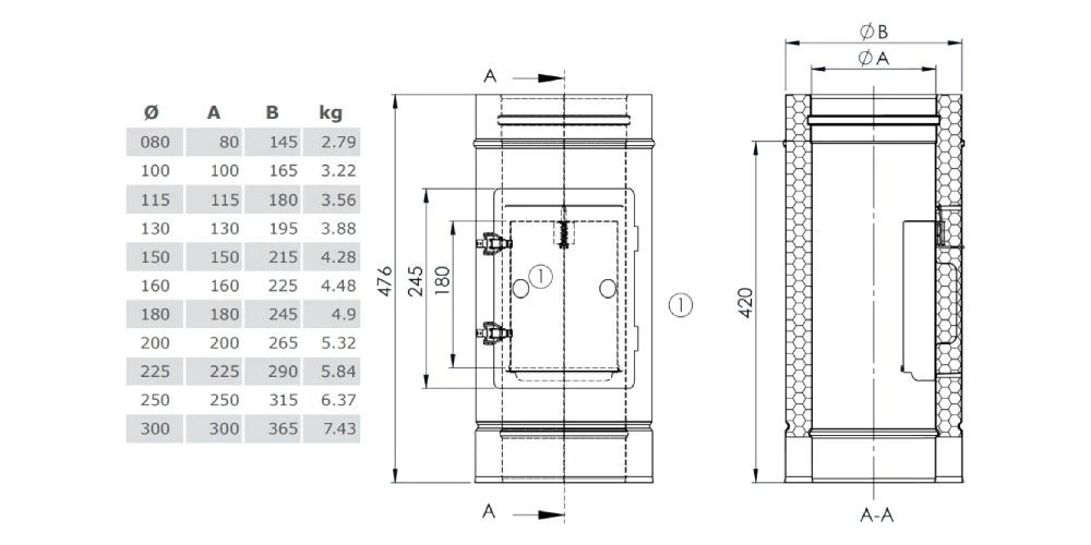 1 x Reinigungselement Design Plus für Festbrennstoffe (Außenbereich) aus Kupfer – doppelwandig – Jeremias DW-FU