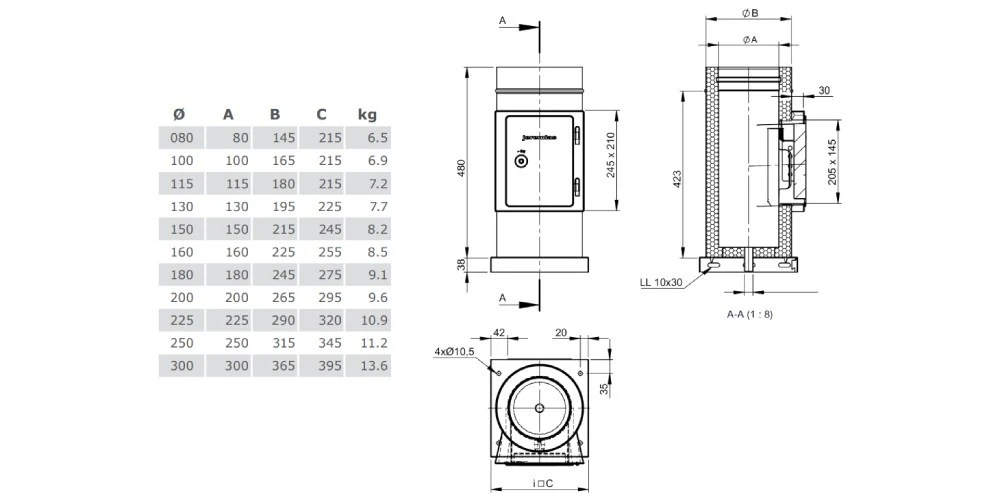 Für den Aufbau von Kupferschornsteinen bei einem geringen Platzbedarf. Wenn ein Schornstein auf engem Raum aufgebaut werden muss, dann kann dieses Bauteil den entscheidenden Vorteil bringen.