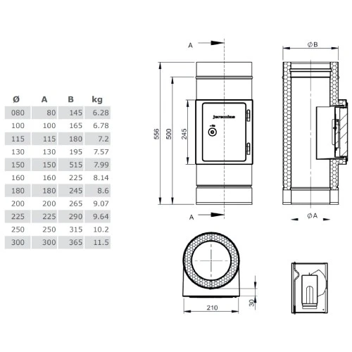 1x Reinigungselement mit Rußschutztüre – doppelwandig für System DW-FU von Jeremias