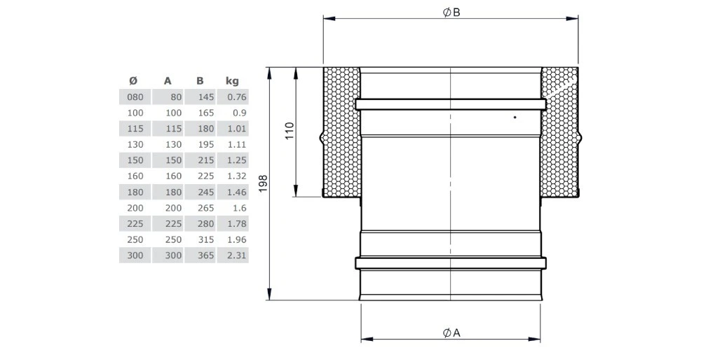 Übergang für unsere Kupferschornstein – Systeme. EW – DW durch Muffe.