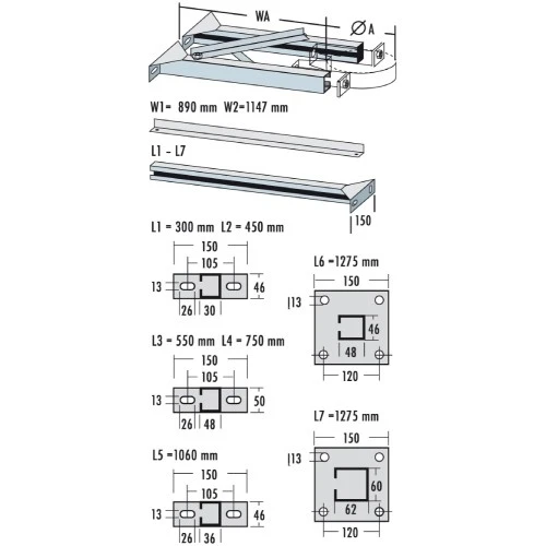 1x Verlängerung für Wandbefestigung L2 für System DW von Raab