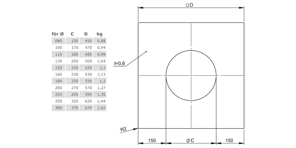 Einteilige Deckenblende für Ihren Kupferschornstein.