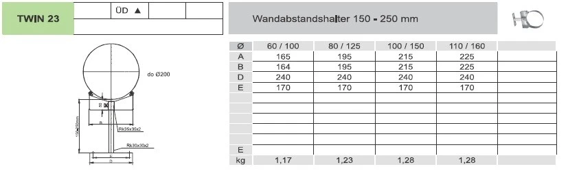 1x Wandabstandshalter verstellbar 50 – 250 mm für TWIN Systeme von Jeremias