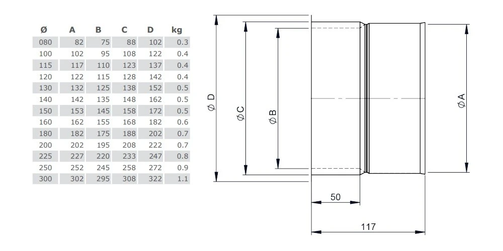 1x Wandfutter doppelt aus Edelstahl für System EW-SILVER von Jeremias