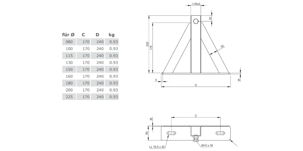 | Materialstärke (Schornstein) (mm) | 0,6 |