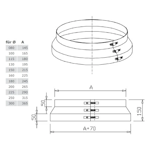 Säurebeständiger Wetterkragen für den Kupferschornstein.