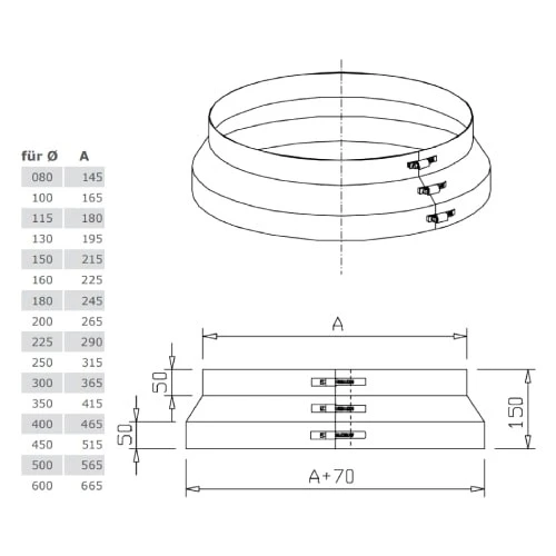 Säurebeständiger Wetterkragen für den Schornstein.