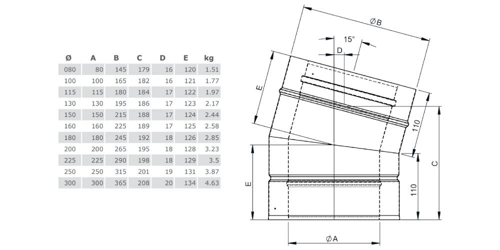 1x Winkel 15° starr für System DW-FU von Jeremias