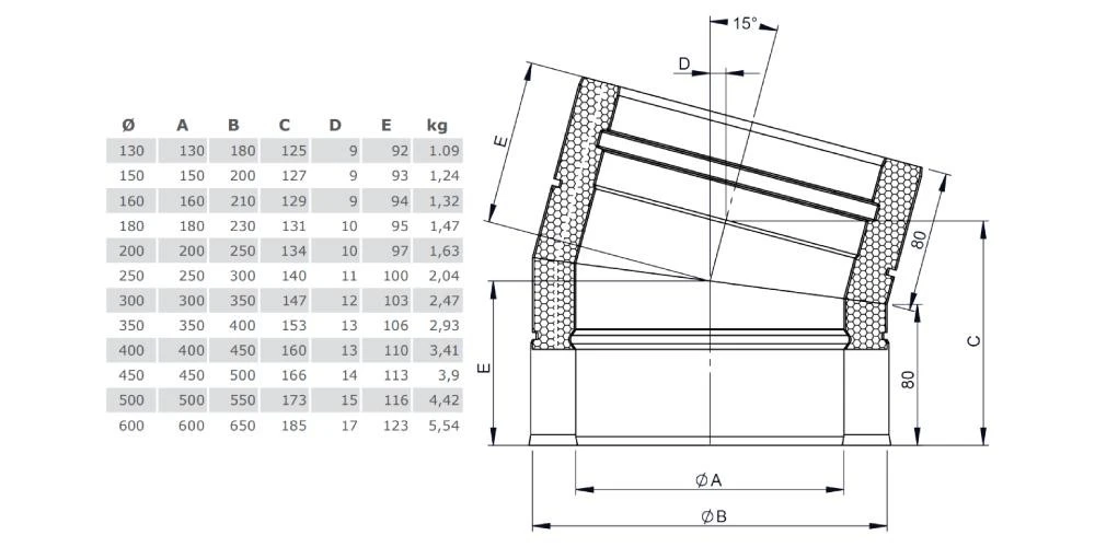 1x Winkelelement 15° für den Edelstahlschornstein DW-ECO von Jeremias