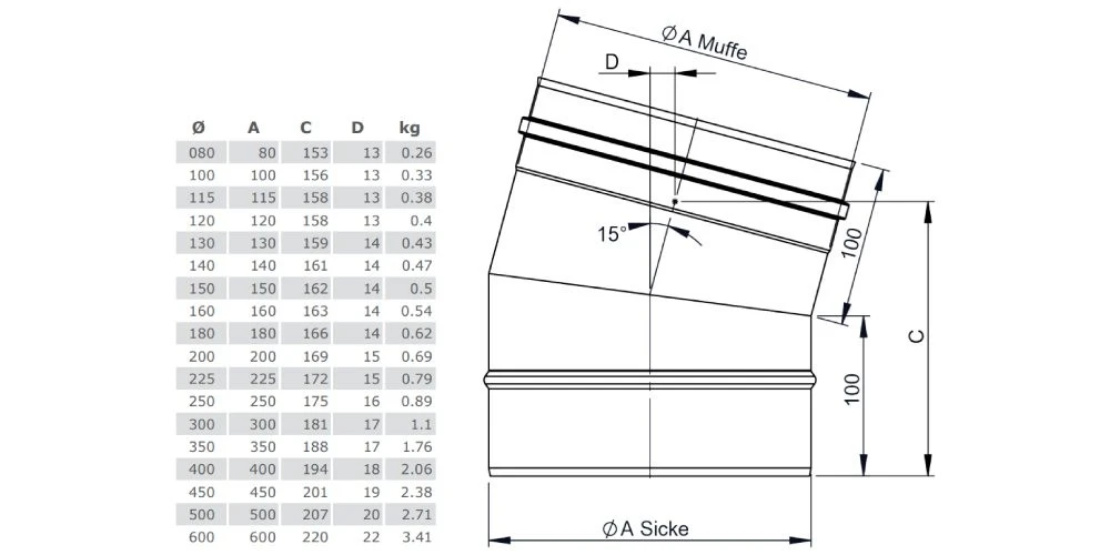 | Materialstärke (Schornstein) (mm) | 0,6 |