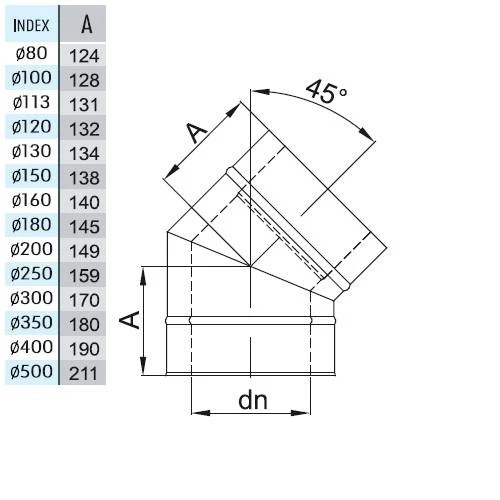 1 x Winkel 45° – doppelwandig – Reuter DW-BLUE