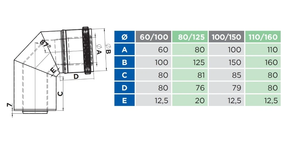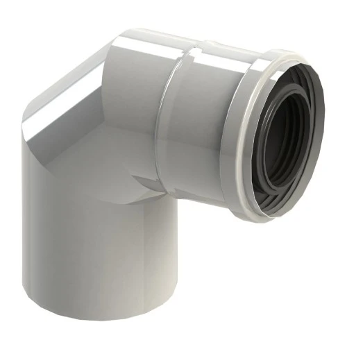 Winkel 87°. Konzentrische Verbindungsleitung für Feuerstätten in raumluftunabhängiger Betriebsweise. Einbau nur im Gebäude, als Verbindungsleitung zur senkrechten Abgasführung.