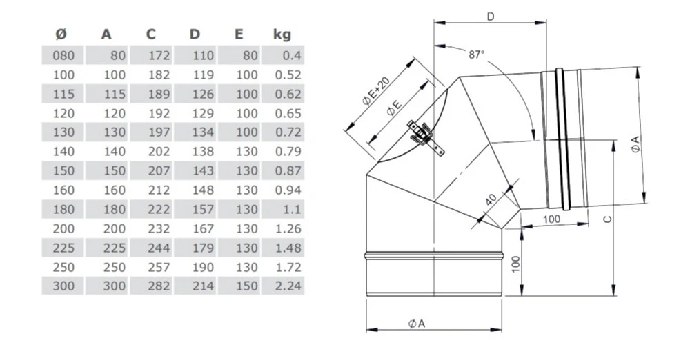 1x Winkel 87° starr mit Revisionsöffnung für System EW-SILVER von Jeremias